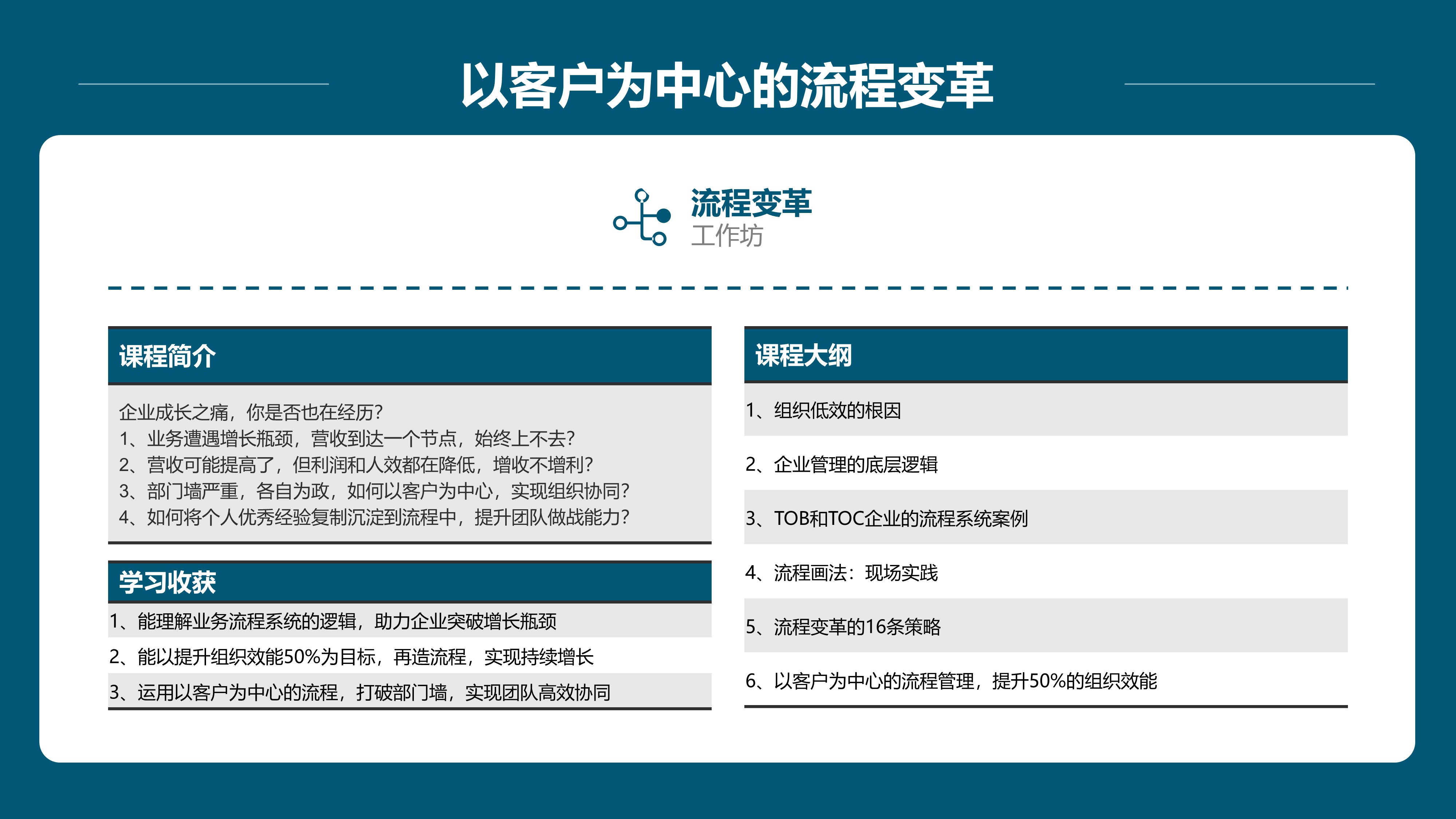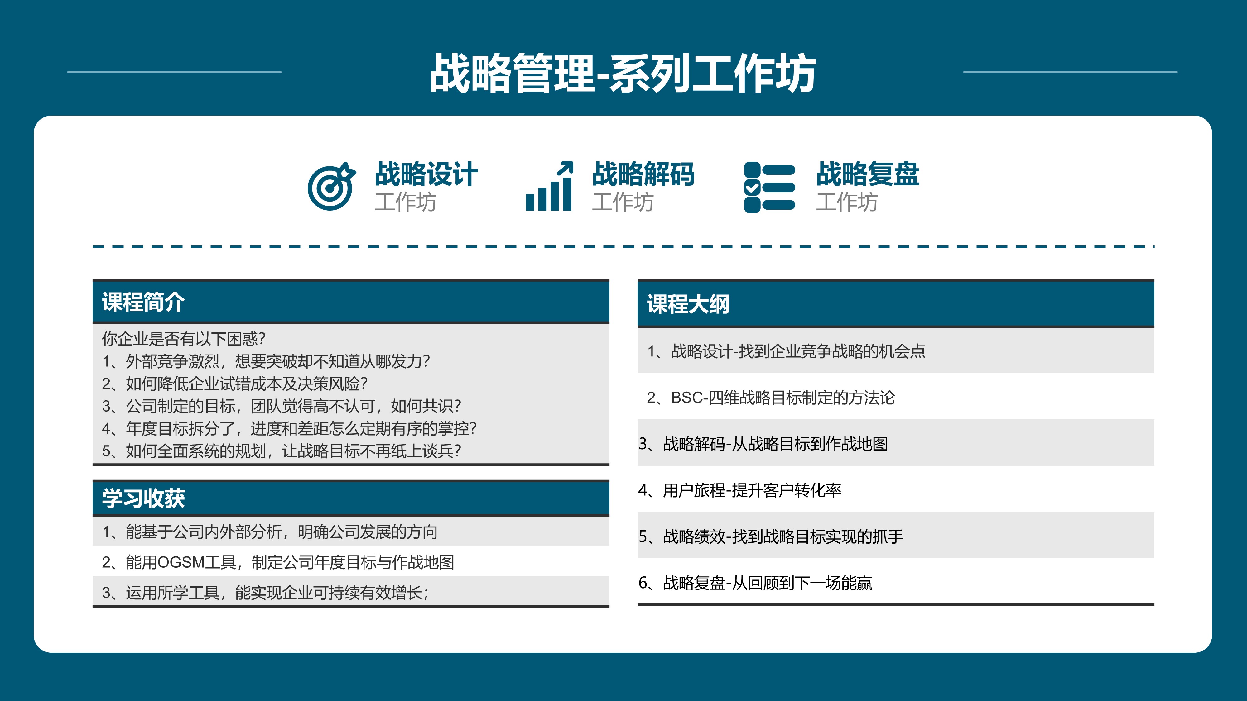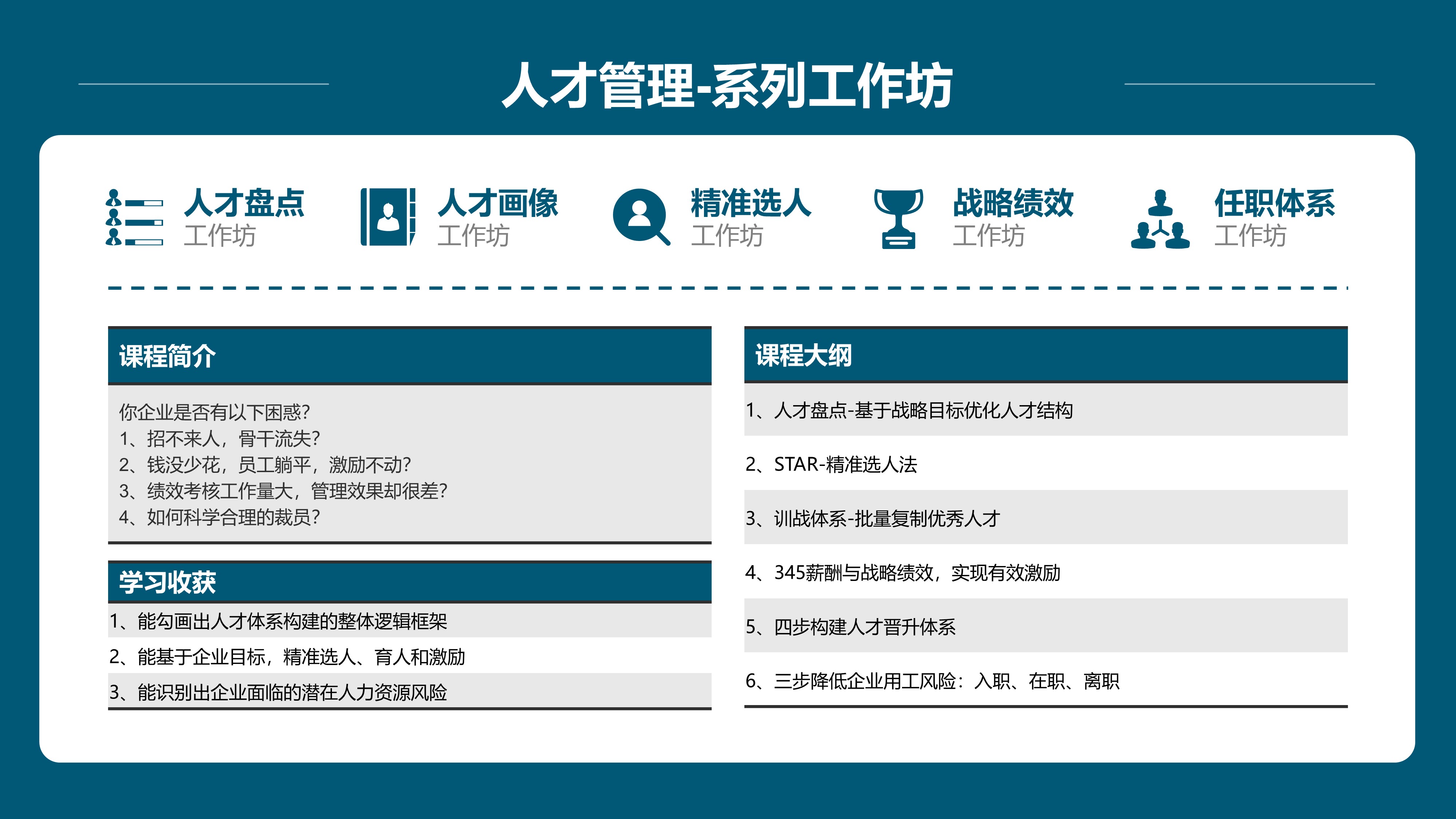 聚焦企业经营管理压力,涵盖:企业文化、战略、流程、人才管理等“刚需培训课程“,带团队边学边练,边产出成果!【点击查看】