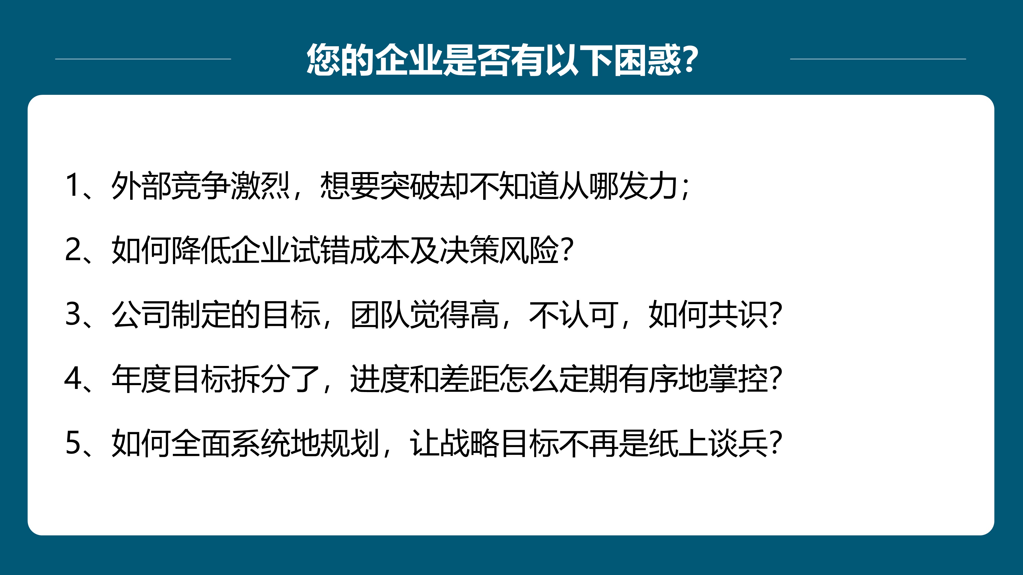 企业战略是基于客户需求和市场竞争,对如何打赢的研究和规划!通过团队共创和共识,完成定目标-追过程-拿结果!【点击查看】
